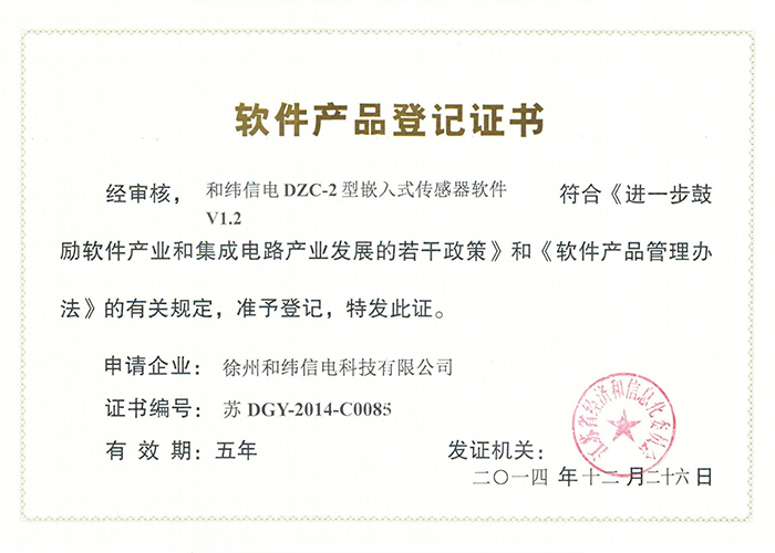 • 10軟件產品登記證書——和緯信電HSCD-2單向導通控制器軟件V1.3